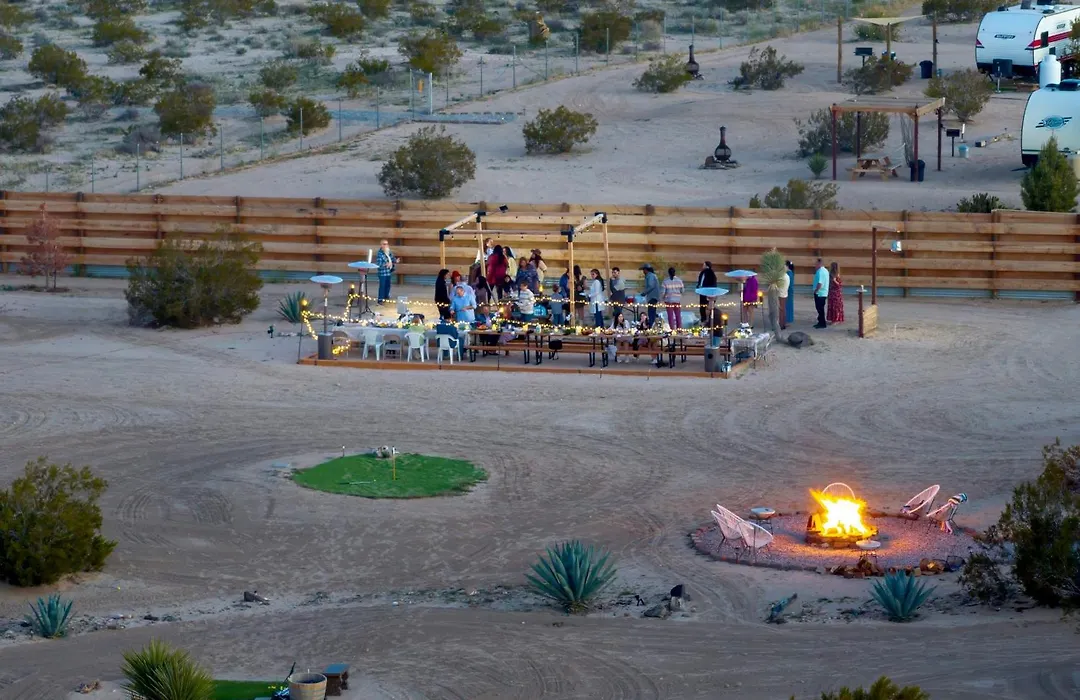 La Joshua Tree Village Campground - Glamping Retreat se encuentra a una distancia de 2 km de Cottonwood Spring Oasis e invita a los huéspedes a disfrutar de un patio soleado. Esta villa ofrece a sus huéspedes una experiencia relajante con bañera de hidromasaje.